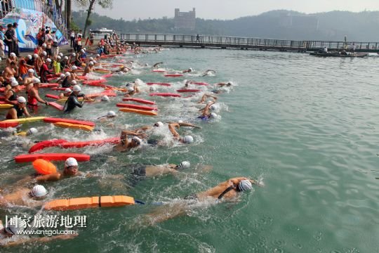 臺(tái)灣南投:千人橫渡日月潭(圖)