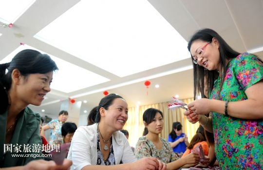 國家旅游地理 安徽合肥9月17日訊 9月17日,非遺剪紙傳人侯宏妹向?qū)W員講解“花好月圓”剪紙作品的制作。當日,合肥市清溪路社區(qū)邀請非物質(zhì)文化遺產(chǎn)剪紙傳人侯宏妹來到社區(qū)向剪紙愛好者傳授技藝,并一起創(chuàng)作中秋題材的剪紙作品,迎接中秋佳節(jié)。 /新華社記者劉軍喜攝