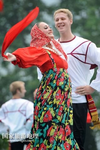 9月17日,俄羅斯彼特尼茨基國家模范藝術(shù)團(tuán)成員在現(xiàn)場表演。
