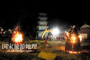 國家旅游地理 福建泉州9月20日訊(記者_(dá)黃偉強(qiáng) 秦越 文圖) 中秋夜,第三屆“燒塔仔”中秋民俗活動(dòng)在晉江安海安平橋畔白塔下舉行,兩座高4米、寬1.5米的磚塔里正冒著熊熊烈火,現(xiàn)場火光沖天,給安海老百姓帶來了別樣的節(jié)日歡樂。