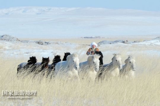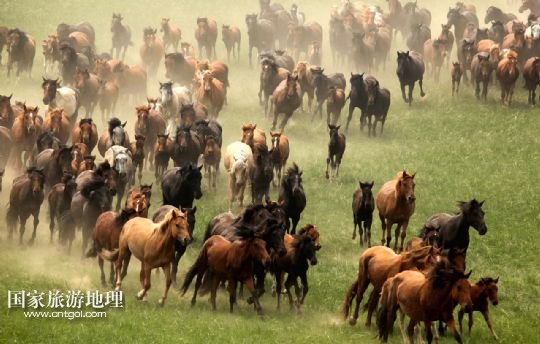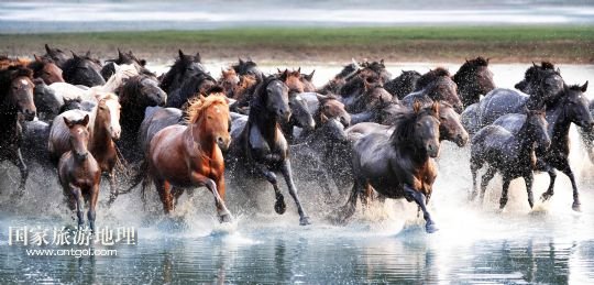 國家旅游地理 1月30日訊 一群蒙古馬在內(nèi)蒙古錫林郭勒盟阿巴嘎旗涉水奔馳(2013年7月20日攝)。風(fēng)從草原吹過,留下多少傳說。在內(nèi)蒙古草原,駿馬與人為伴,縱橫馳騁,一直和諧相處到今天。在漫長的歷史長河中,駿馬陪伴著人們走過了滄桑歲月,留下了許多可歌可泣的動(dòng)人傳說。