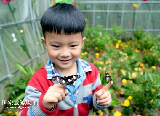 國家旅游地理 浙江杭州4月27日訊 4月27日,一名小朋友在“蝴蝶谷”觀賞落在手上的蝴蝶。當(dāng)日,位于浙江杭州江洋畈生態(tài)公園的“蝴蝶谷”對外開放,50多個品種的600多只蝴蝶在“蝴蝶谷”翩翩起舞,吸引了眾多游客前來觀賞。 /新華社發(fā)(施健學(xué) 攝)