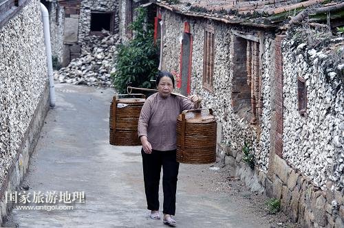 5月11日,在福建泉州豐澤區(qū)東海街道蟳埔社區(qū),一位蟳埔女挑著擔(dān)子走在村道上,村道兩旁是古老的蠔殼厝。宋元時期,這里是泉州“海上絲綢之路”的重要港口,遠(yuǎn)洋航船載著絲綢、茶葉、瓷器等貨物運往世界各地,返程時壓船的海蠣殼成了村民們的建筑材料。
