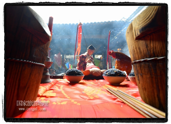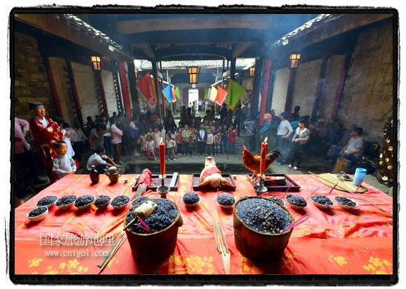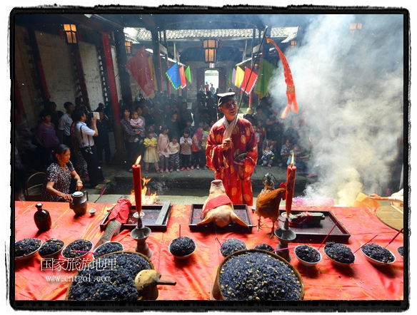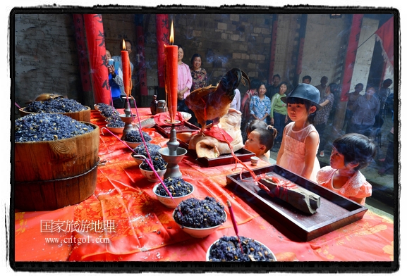 國家旅游地理 江西婺源(上饒)5月31日訊(特約記者王國紅 通訊員程新德攝影報(bào)道) “祭祀開始、鳴炮奏樂、祭拜、主持人講話、結(jié)束鳴炮”,5月25日,農(nóng)歷四月初八,石佛村烏飯節(jié),村民將自家精心制作的烏飯端進(jìn)祠堂祭祀。江西省婺源縣段莘鄉(xiāng)石佛村每年都要舉行烏飯祭祖活動,各家各戶將自家精心制作的烏飯端進(jìn)祠堂……